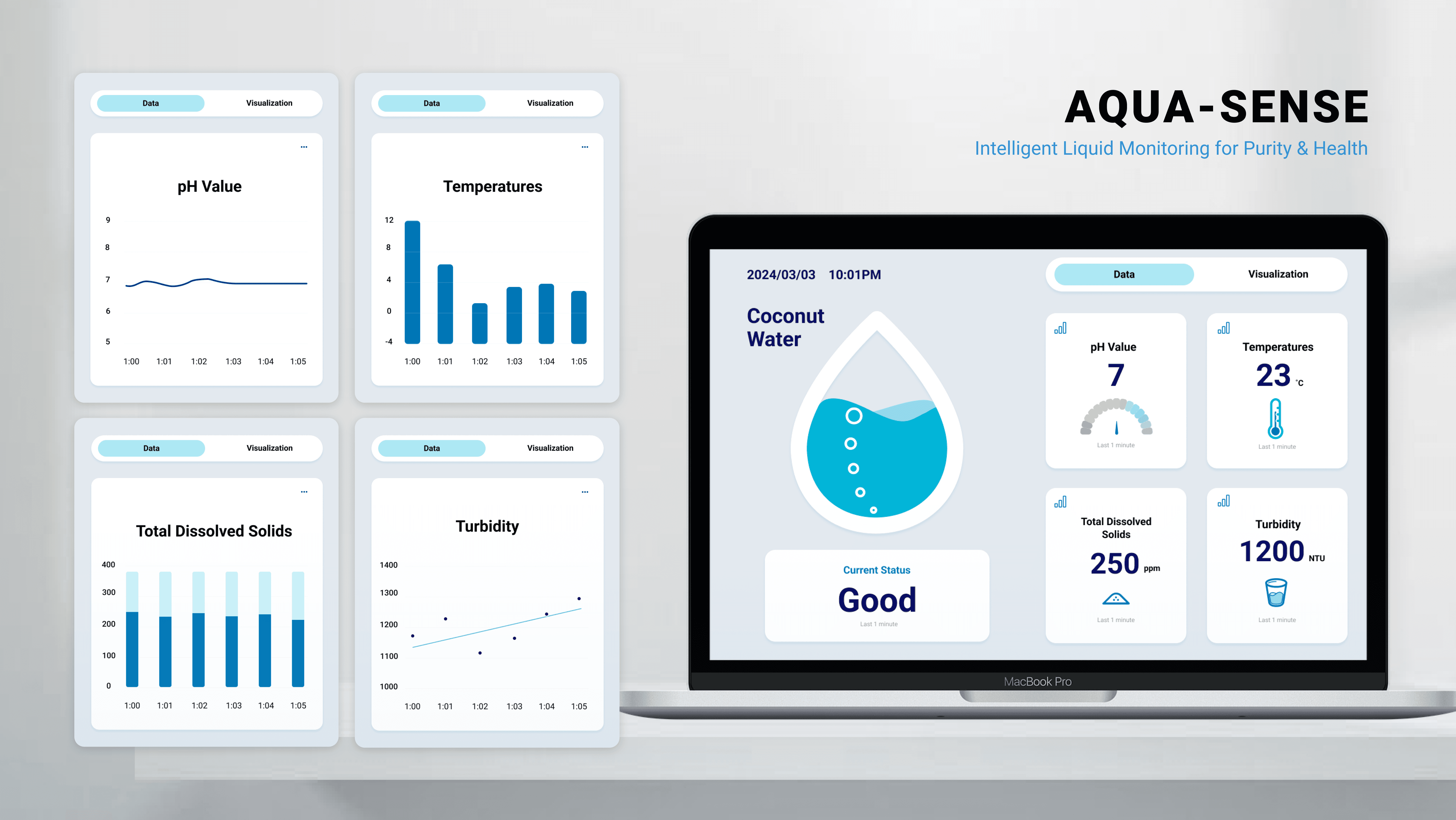 Each year, 600 million people worldwide and 1 in 6 Americans suffer from foodborne illness. Unlike solid foods, edible liquids can spoil without visible signs, allowing harmful bacteria to develop unnoticed. This hidden risk inspired AQUA-SENSE—a smart bottle that makes the invisible process of liquid spoilage visible, helping people make safer consumption decisions.